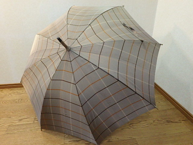 > 140s106k BURBERRYS バーバリー 古い長傘 雨傘 チェック レトロ 木製 当時物 中古 傘 キズ 穴 (北海道・沖縄・離島は発送不可)