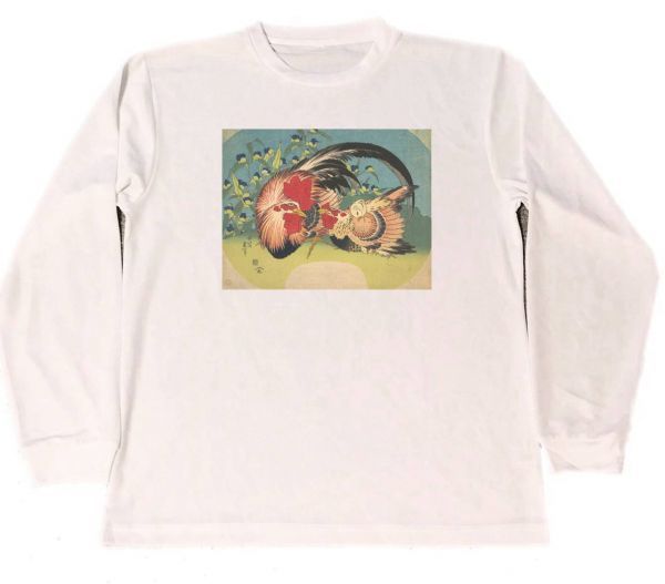 - 葛飾北斎 ドライ Tシャツ 名画 絵画 浮世絵 アート グッズ HOKUSAI UKIYOE 露草に鶏と雛 ロング ロンT 長袖