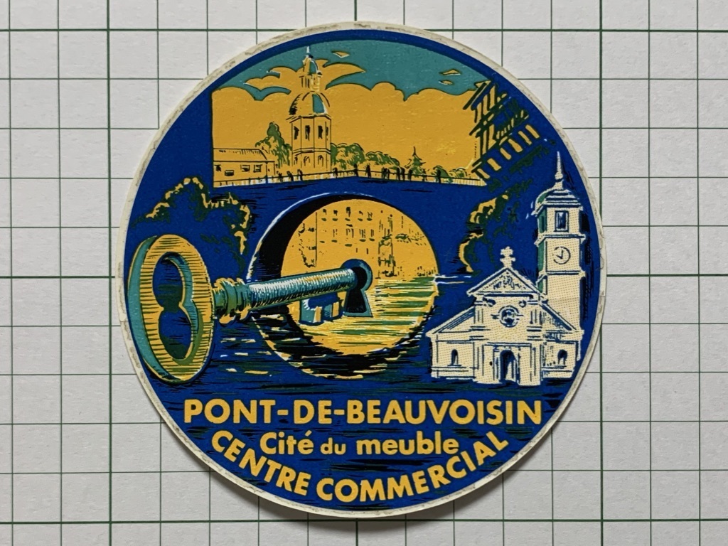- フランス 古いステッカー:PONT-DE-BEAUVOISIN 橋 鍵 デザイン 広告 ビンテージ +Ia