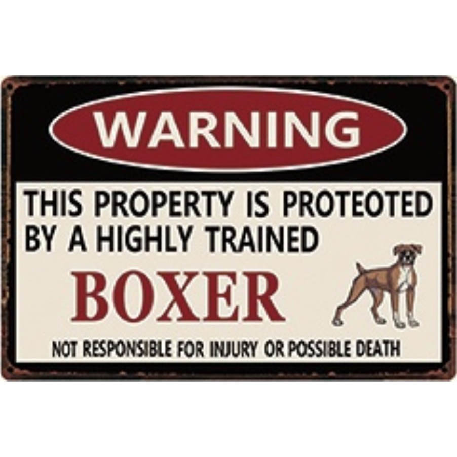 > A2816 メタル サイン 金属 製 ブリキ 看板 プレート 店 注意 警告 危険 防犯 動物 ペット 犬 番犬 猛犬 ボクサー【4632】