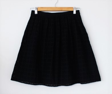 > 美品*UNIQLO*ユニクロ*黒*花柄*総レース*コットン素材*ギャザーフレア*ひざ丈*スカート*M*レディース