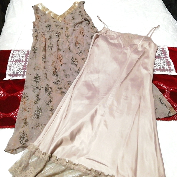> ココア色シフォンネグリジェ キャミソールベビードール ノースリーブドレス 2P Cocoa color chiffon negligee camisole babydoll dress