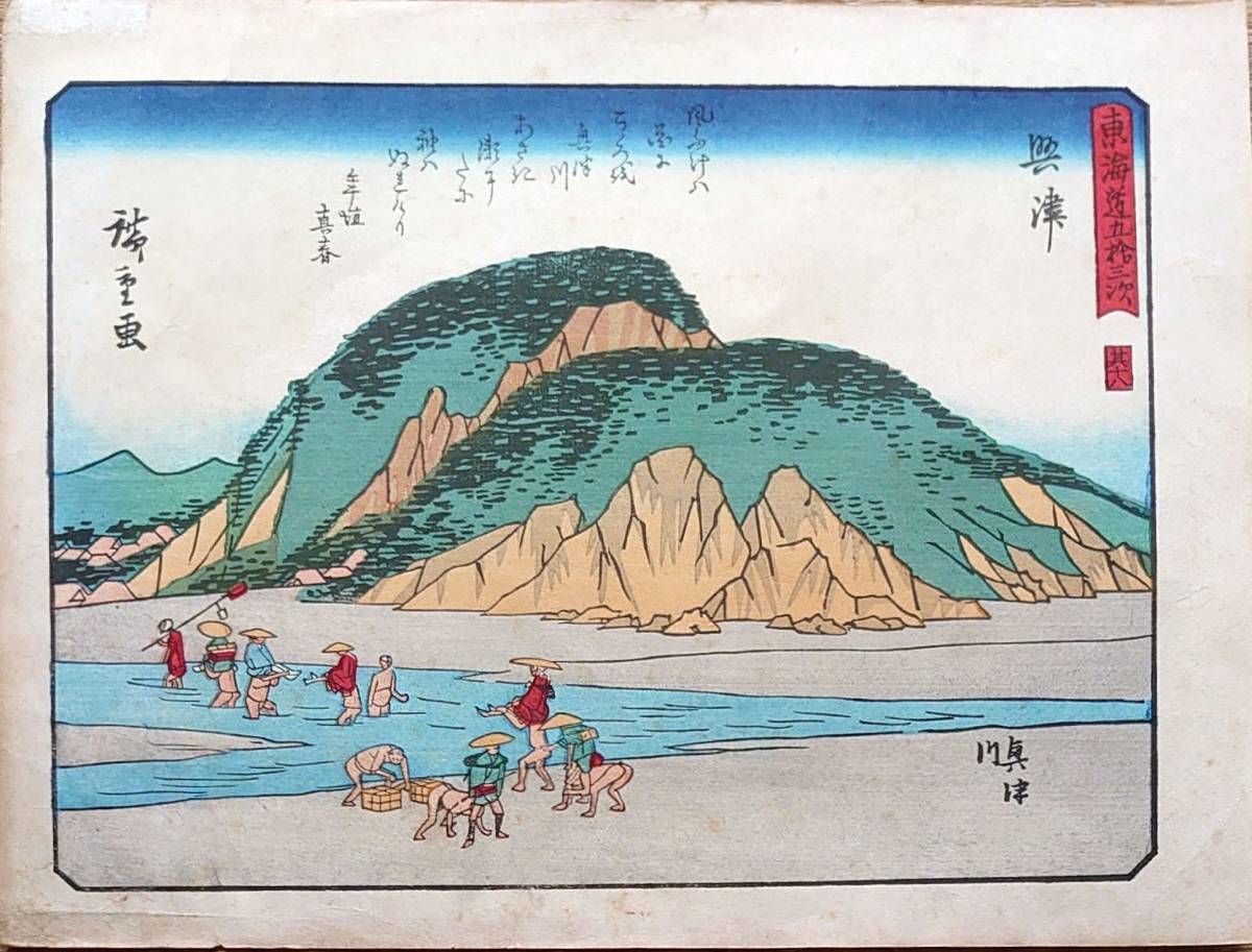 - f21081203〇浮世絵 彩色版画 広重 狂歌入東海道五十三次 興津 風ふけば花にこゝろ 昭和時代 後刷〇和本古書古文書
