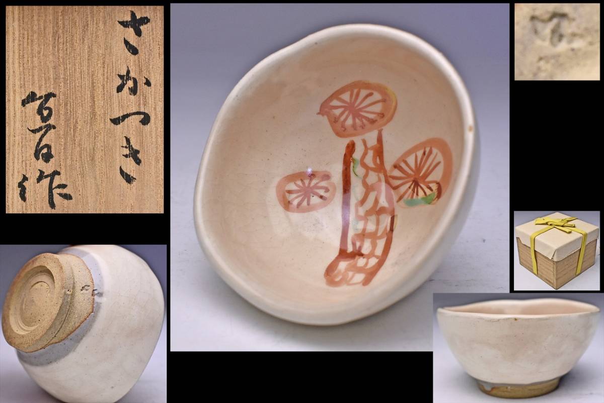 > 出口直日 ★ 宋赤絵風 松絵 さかつき ぐい呑 ★ 共箱 ★ 氏らしい筆致に暖かみのある逸品 ★検 大本教 出口王仁三郎