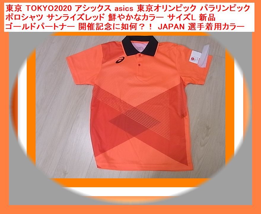東京 TOKYO2020 アシックス asics 東京オリンピック パラリンピック ポロシャツ サンライズレッド 鮮やかなカラー L 新品 ゴールドパートナー 記念に JAPAN 選手着用カラー