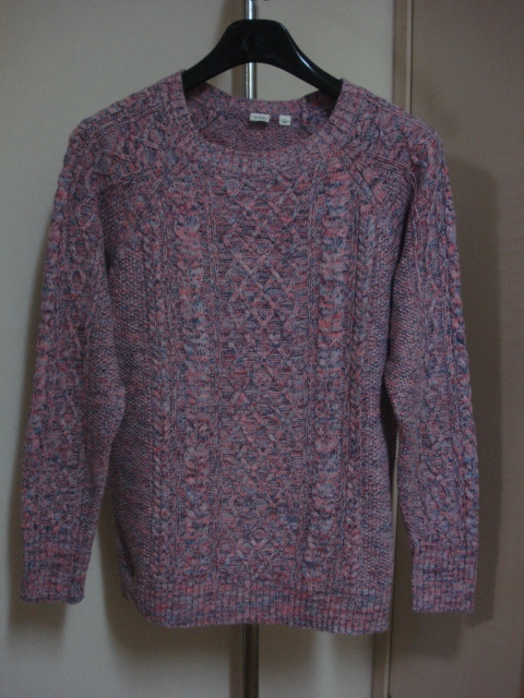 - 格安廃版レアモデル・GAP(ギャップ)・お洒落なピンク~パープル系のミックスバルキー風織地・部分縄編み入りフィッシャーマン風セーター L