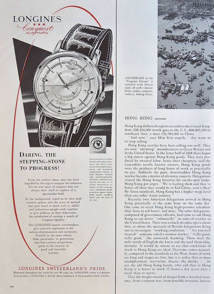 - 稀少・時計広告!1959年ロンジン 時計広告/Longines Conquest Automatic Watches/O