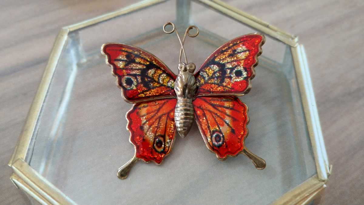 - □幸運の蝶・オレンジ色・蝶々のブローチ□ケースあり□