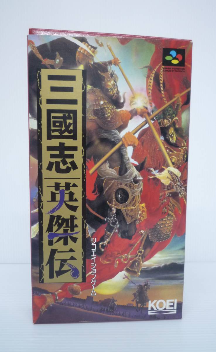 > 【開封品】スーパーファミコン 三国志 英傑伝(SLG)【動作未確認、説明書欠品、劣化擦れ傷汚れヤケ有】