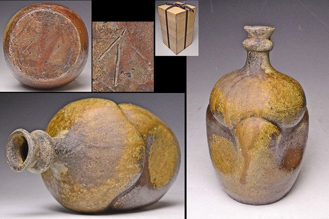 > 金重媒陽 か ★ 備前 窯変 大徳利 ★ 木箱 ★ 人間国宝 金重陶陽 の父 ★ 土味良く独特の造形が見事な逸品 ★