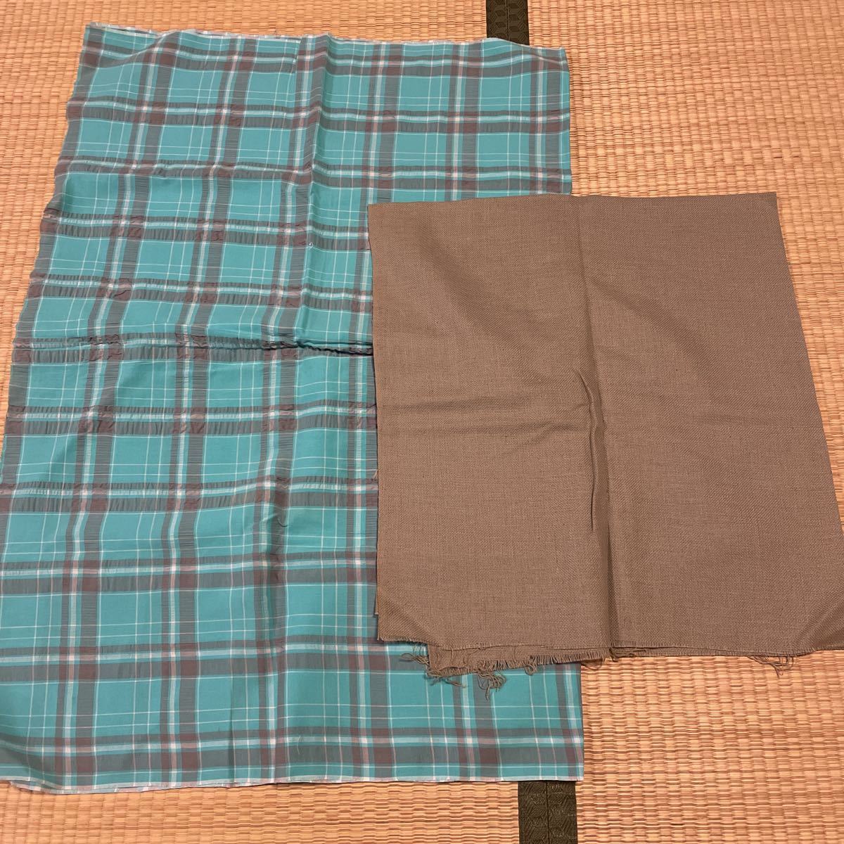 - はぎれ 2点セット チェック柄 リネン 水色 カーキ色 裁縫 リメイク DIY 手作り ハンドメイド