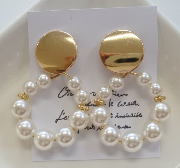 - 9 ピアス アクセサリー 手作り ハンドメイド ゴールドx白 フェイクパール kgysn m1018