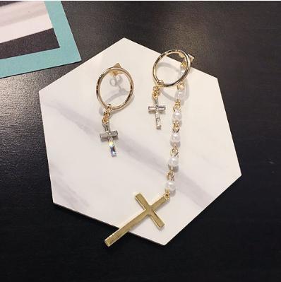 - 【即決価格】ゴールド クロス パール ビジュー アシンメトリー ピアス ★新品★ j000