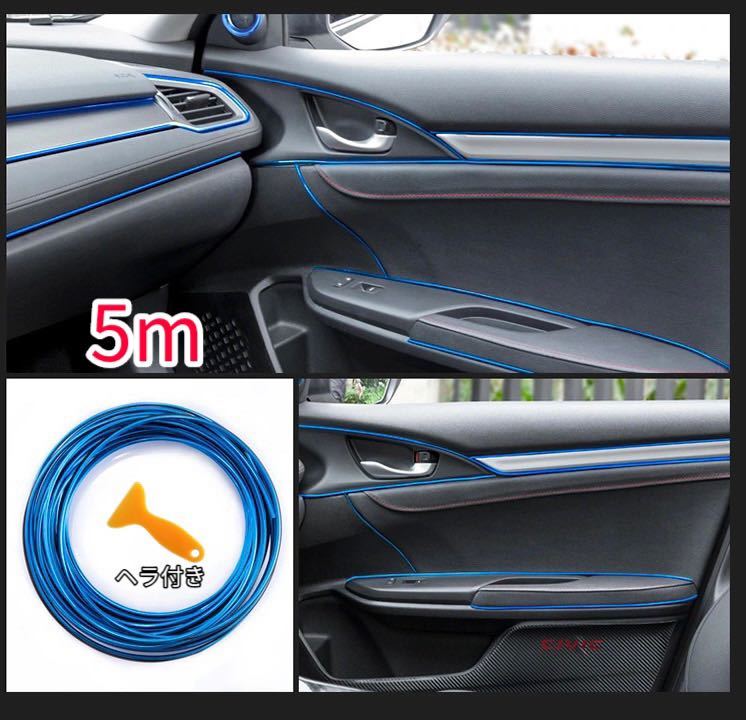 - インテリア モール 5m車内 隙間差し込み メッキドレスアップ 取付ヘラ付ブルー