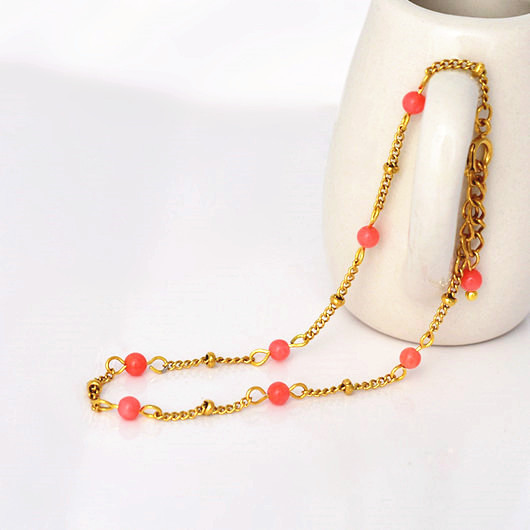 - 天然石 サンゴ 珊瑚 ビーズ ステンレス 18KGF ブレスレット