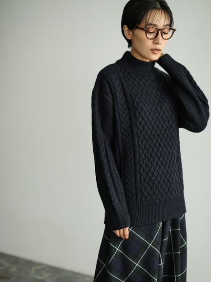 - ⑤新品☆AMERICAN HOLIC:ハイネックケーブルニットプルオーバー(M)