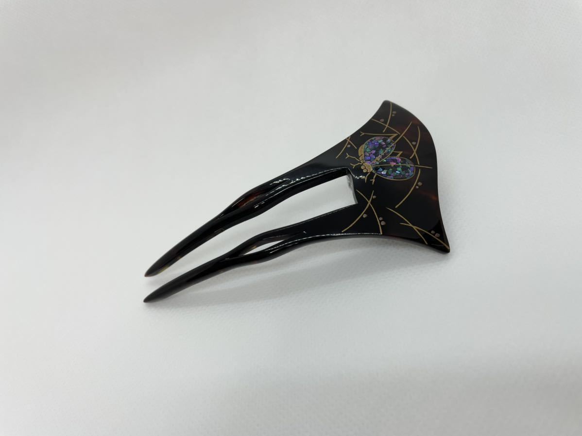 - 【訳あり新品】蒔絵工芸作家「大町憲治氏」蒔絵螺鈿×べっ甲かんざし/螺鈿(らでん)・蒔絵(まきえ)/鈴虫デザイン