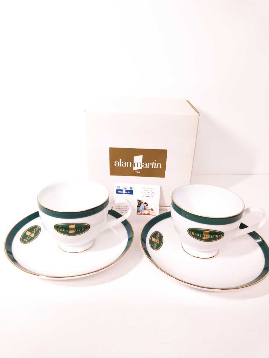 > アランマーチン カップ ソーサー ペア 2客セット コーヒー 紅茶 茶器 珈琲 在銘 美品 未使用 (検索) 茶道 茶道具 箱付 2