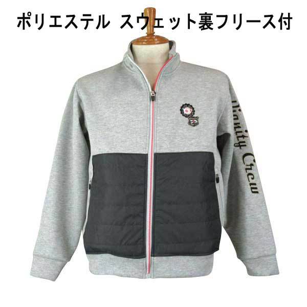 - HIFUMI/ヒフミ 布帛切替/袖刺繍・フルジップトレーナー・グレ-LL