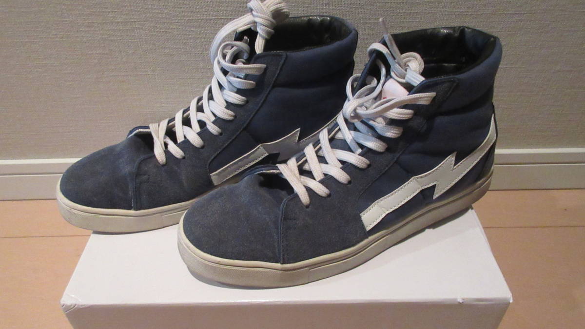 - ナノユニバース TMT nano・universe ハイカット スニーカー コットン スエード ネイビー ブルー コラボ Wネーム 25センチ BIGHOLIDAY 紺色
