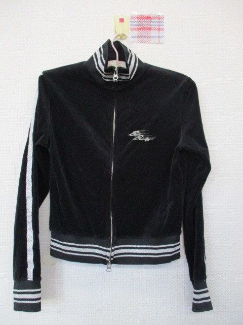 - ★BODY BEAUTY トップス 長袖 ベロア調 ジップアップ 黒×シルバーライン ラメ入り(F)