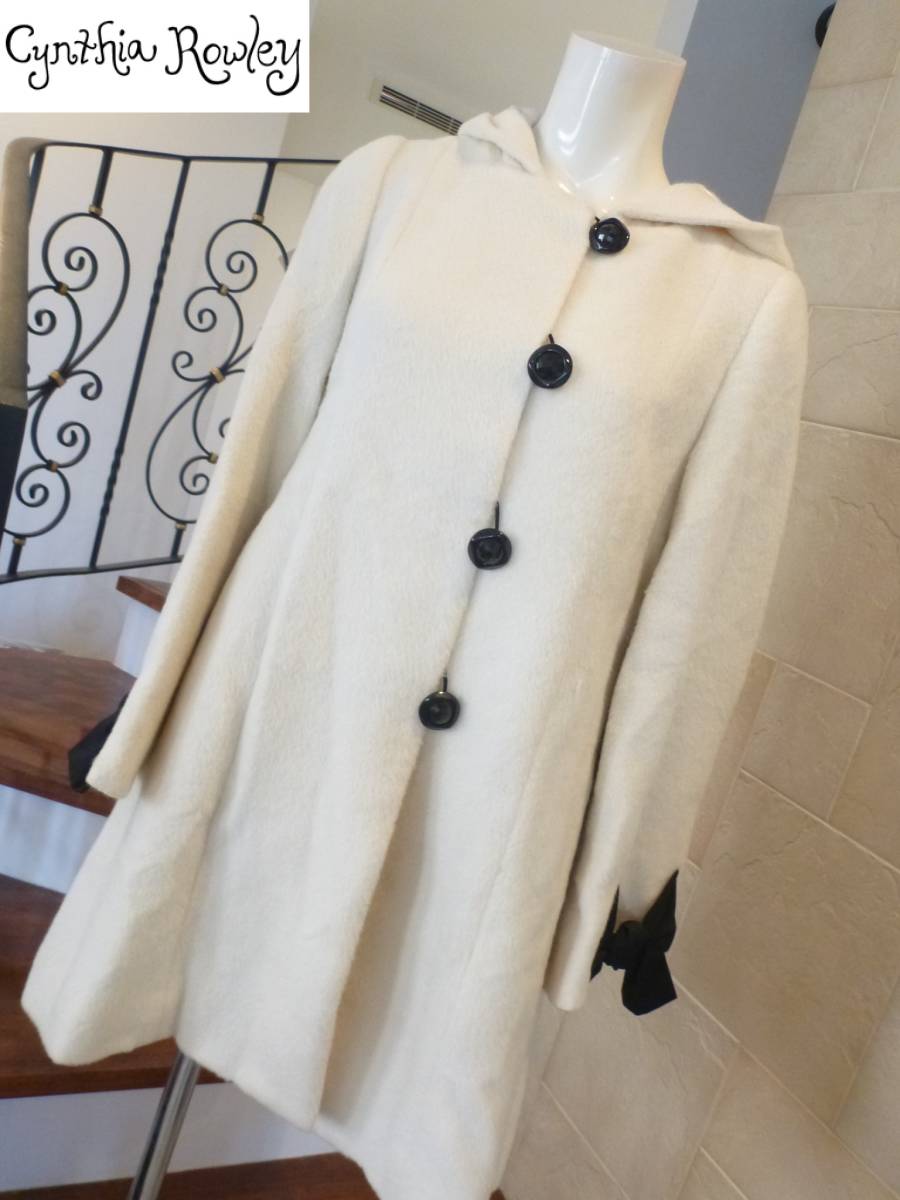 - 美品 シンシア ローリー(Cynthia Rowley) ★オフホワイト×黒 バイカラー コート 2 M相当