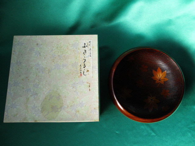 - 光吉 謹製 加賀彫7cm ふきうるし 春秋彫り 紅葉・桜 木製 漆塗 菓子器 未使用品