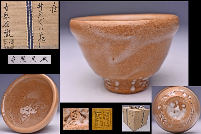> 守繁栄徹 ★ 井戸 ぐい呑 ★ 共箱 共布 栞 ★ 名工による堂々とした逸品 ★ 梅花皮も見られる良い景色の酒器 ★ 山口県 ★