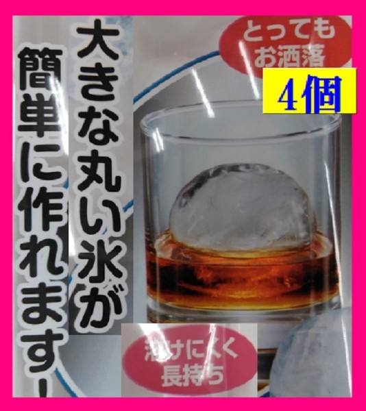 > 【1セット:製氷皿:氷:4個用/4個取】★ 大ボール (5cm):丸:4個作れます(4個取x1):日本製★氷 まんまる 丸型 お菓子 型