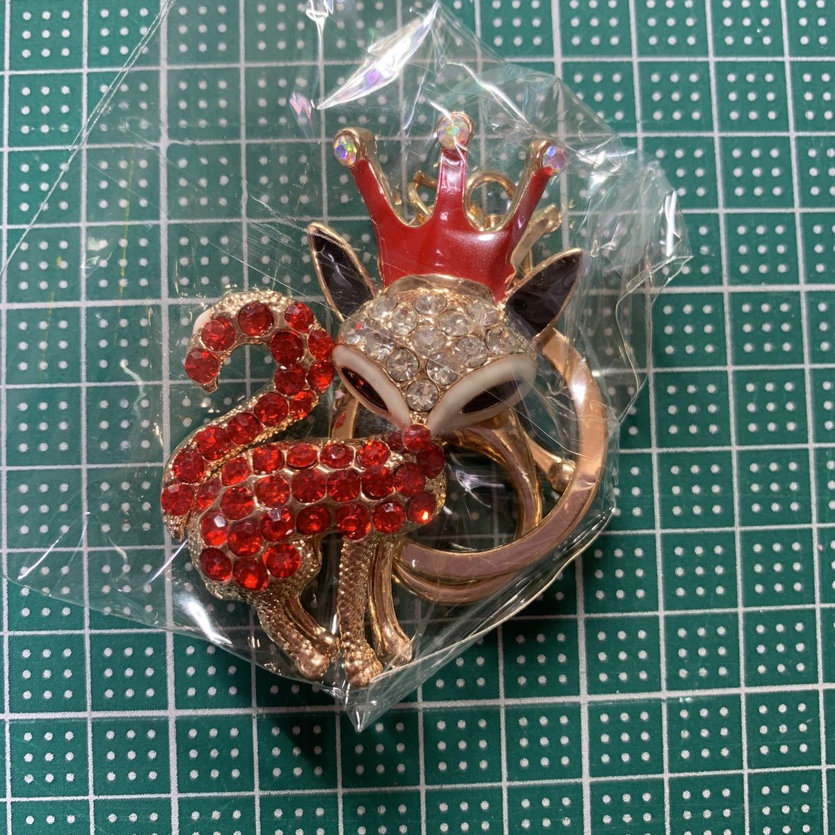 - キラキラストーンチャーム★王冠きつね★赤 バックチャーム、キーホルダー