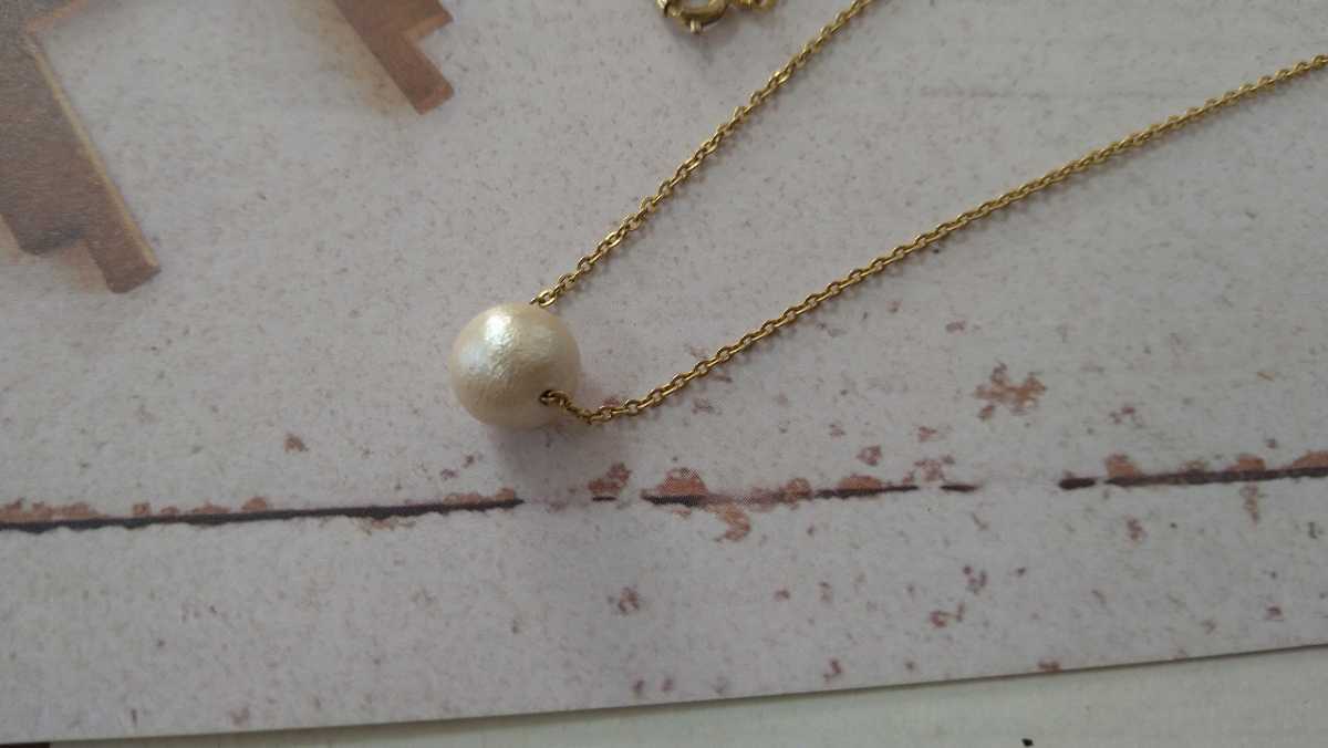 - □1粒コットンパール×ゴールドカラーチェーン・ネックレス□