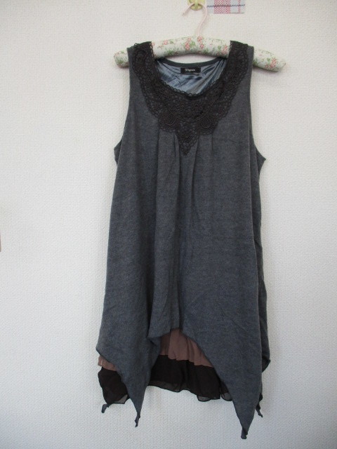 - ★mignon レース シフォン 起毛 チュニックワンピース グレー(L)