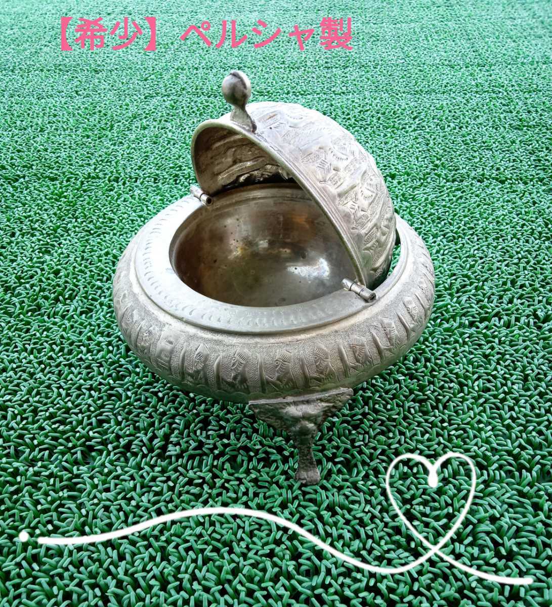 > 【希少品】キャビア/真鍮製品/GHALAM ZANI/ガラムザニー/食器/アンティーク/ペルシャ/ブロカント/シャビーシック/キャビア/イラン/三足