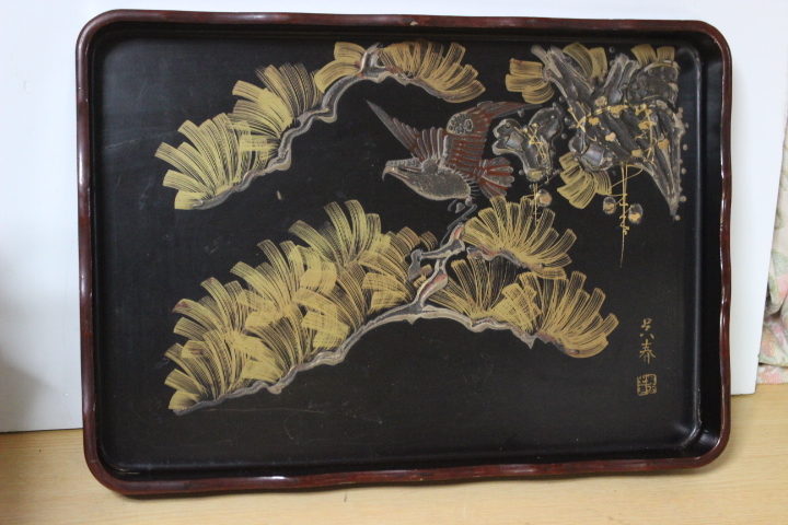 - ▲ え-865 松村呉春 角盆 中古 明治期 高蒔絵 漆 箱なし 大きさ/約寸:縦27.5cm 幅39cm 厚さ3.5cm 重さ600g
