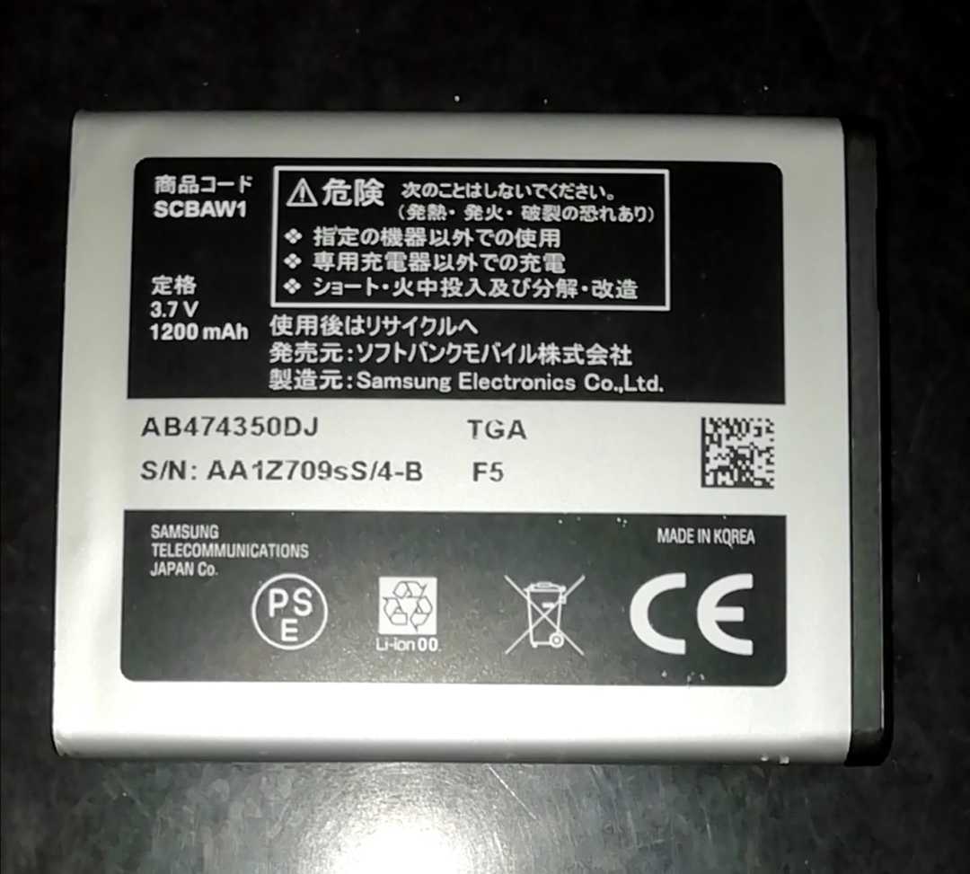 - 【中古】ソフトバンクSCBAW1純正電池パックバッテリー【充電確認済】対応機種(参考)941SC