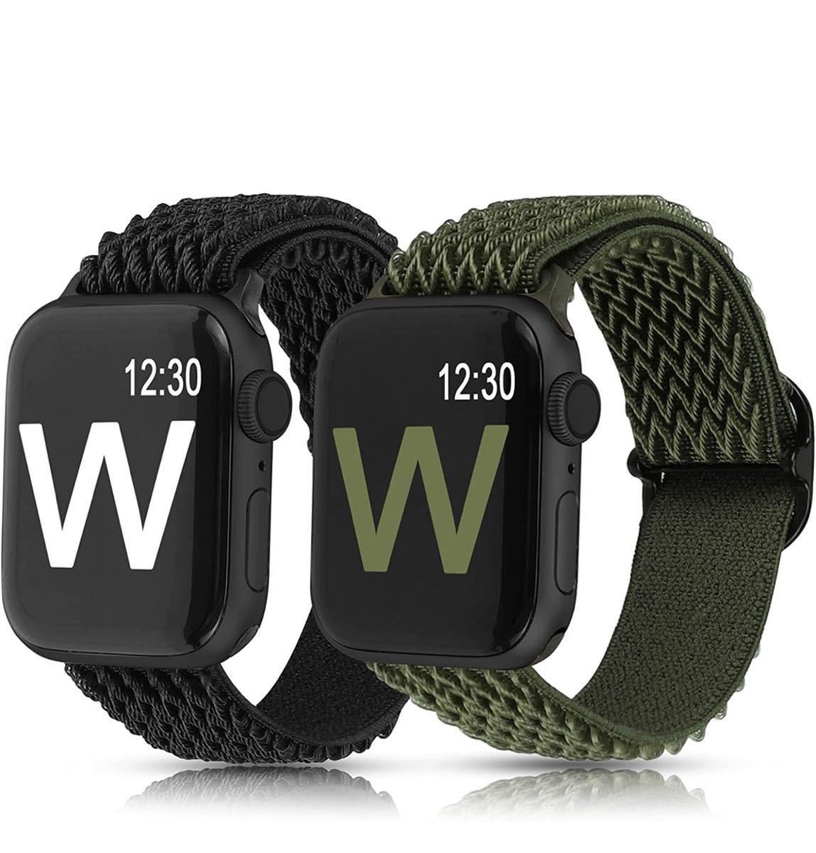 - 【2個付き】Apple Watch アップルウォッチ バンド42/44/45/49mm シリーズSE/8/7/6/5/4/3/2対応 ナイロン製弾性バンド (ブラック+グリーン)