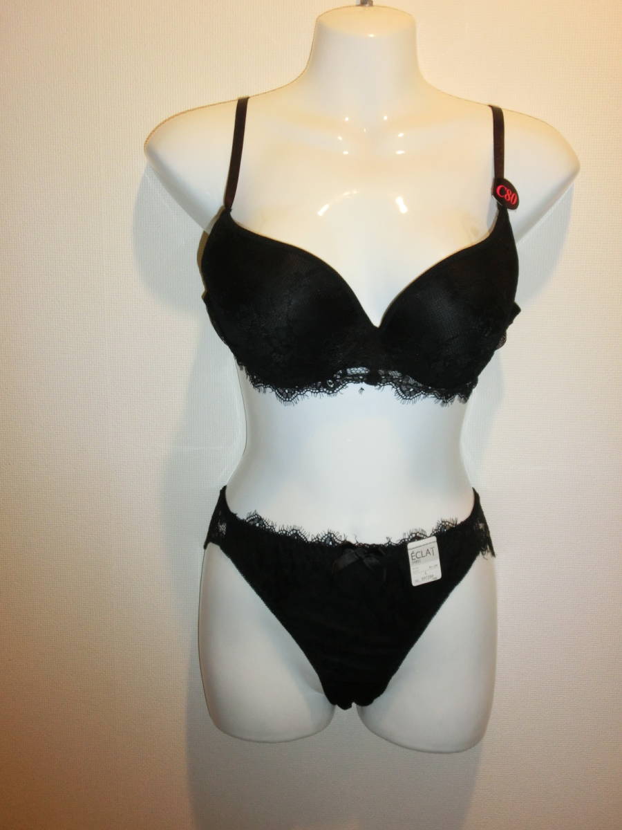 - ☆P193セクシーなレース柄♪ブラ&ショーツペア(C80)ブラック♪4分の3カップ☆