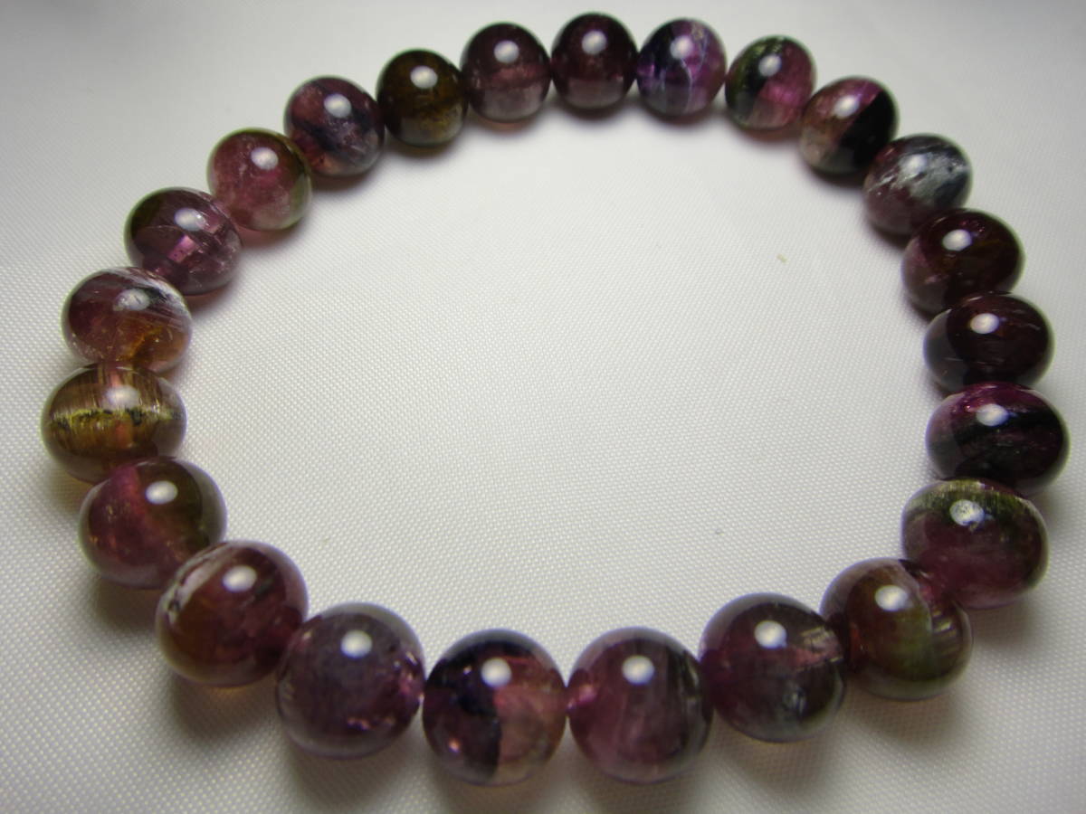- 天然石 ウォーターメロン バイカラートルマリン 約8㎜玉 ブレスレット Y182