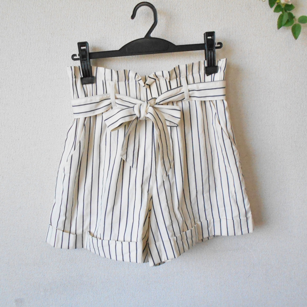 - レッセパッセ LAISSE PASSE サッシュリボン 付 夏 向き ストライプ 入 ショート パンツ キュロット 38