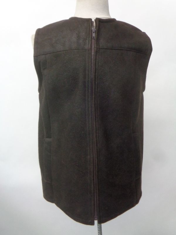 - メンズ ブラウン シープスキン ラム・ベスト アメリカンサイズ 38-40 ラウンドネック