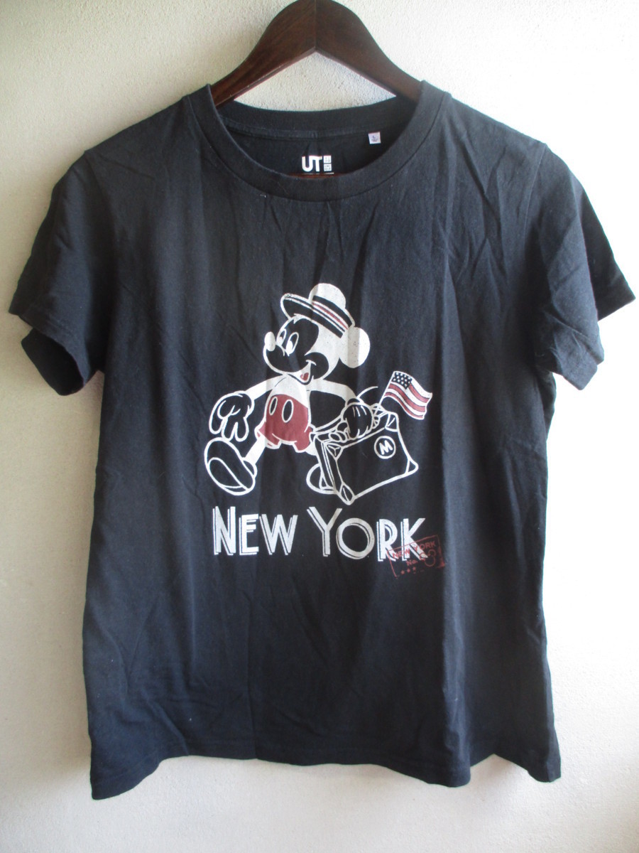 > 【ユニクロ】 Tシャツ レディース サイズ:L 色:ブラック 身丈:60 身幅:46 肩幅:39/FAW