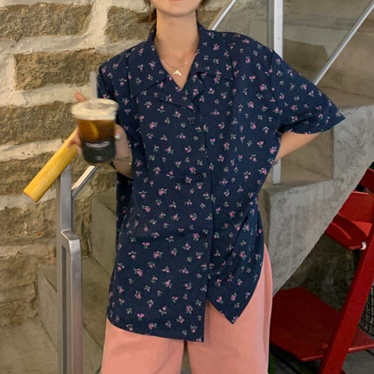 - JS FASHION 小花柄ブラウス ネイビー