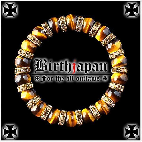- 10mm/ロンデル×虎目石タイガーアイ数珠ブレスレット/オラオラ系