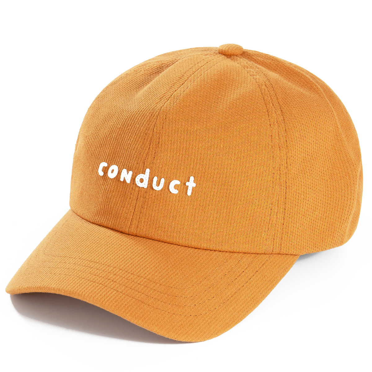 > ユニセックス コットン カーブキャップ ボールキャップ 立体ロゴ ゴルフ キャンプ アウトドア カジュアル シンプル 'conduct' キャメル