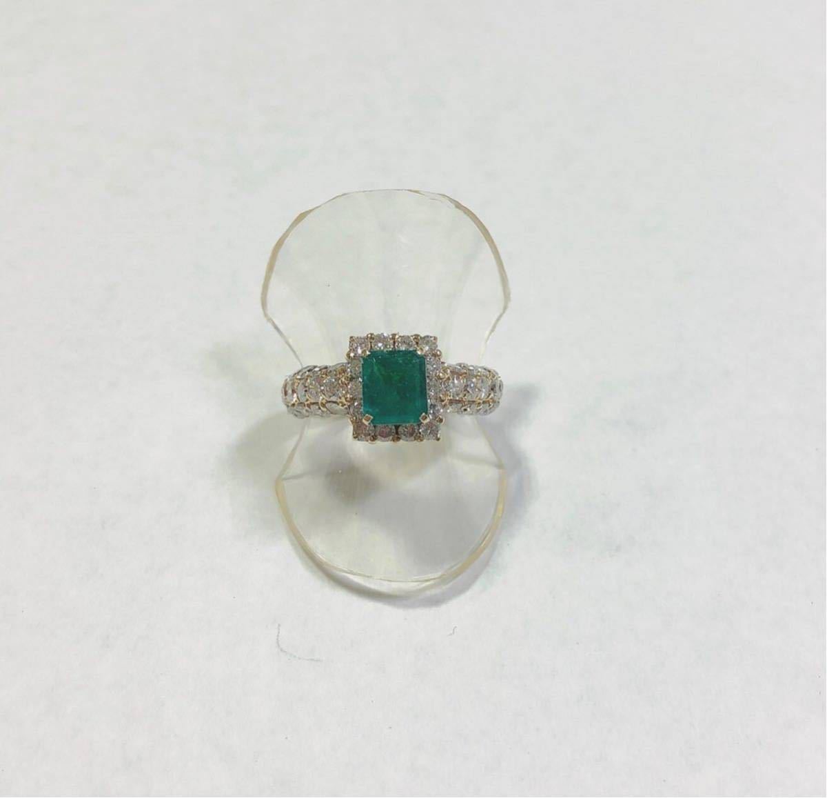 - 【質屋 尾張屋商店 東京】 ☆鑑別結果付☆ K18YG イエローゴールド エメラルドダイヤモンドレディースリング #8