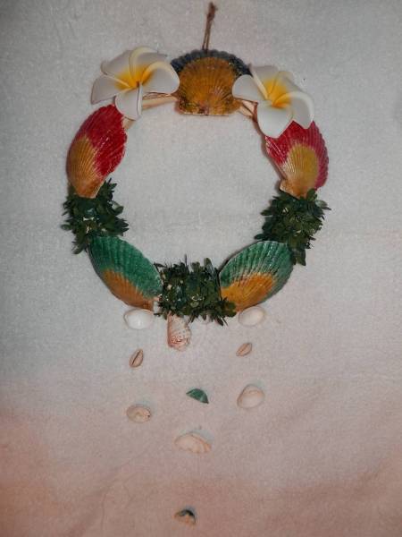 - ハンドメイド プルメリア・ホタテ貝5個付きリース①(34㎝)