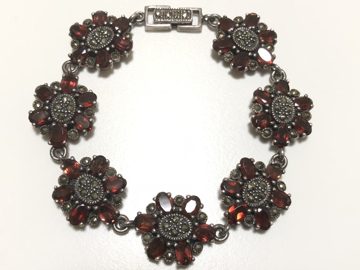 > アンティーク ガーネット マルカジット(マーカサイト) SILVER925 32.7g デザイン ブレスレット