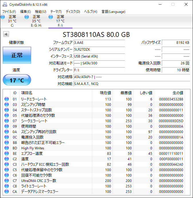 - Segata Serial ATA動作品 80GB/26回/10H