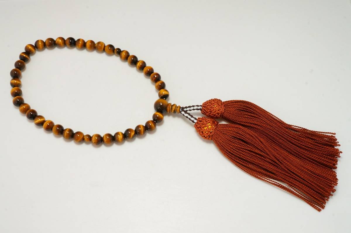 - 早い者勝ち1点のみ【タイガーアイ7.3mm念珠】 数珠 正絹頭付房 全宗派使用可能 仏具 お葬式 法事