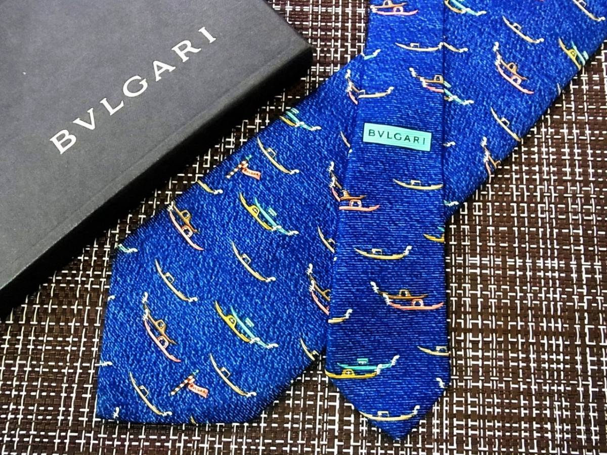 > ☆状態並N☆5993■【BVLGARI】ブルガリ ヨット船~柄~「最高級セッテピエゲ」 ネクタイ